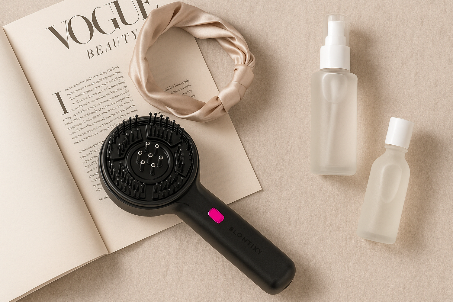Apply your favorite oil or serum directly to your scalp — or pour it into the built-in container. The device gently spreads it as you massage, no mess, just glow.